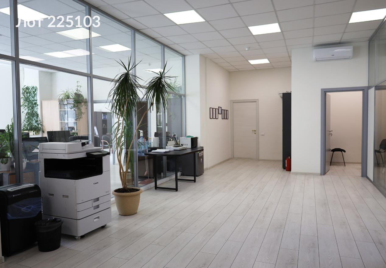 Лот № 225103 Предлагаем в аренду офисное помещение общей площадью 222 м².Помещение находится в хорошем состоянии и готово к эксплуатации. В нём предусмотрены стеклянные перегородки и большое количество окон, выходящих на улицу. Высота потолков составляет более 3 метров. . Стены подготовлены под покраску, а двери выполнены из металла.В блоке установлена приточно-вытяжная вентиляционная система. Также имеются кондиционеры и пожарная сигнализация.Кроме того, в здании предусмотрен отдельный выход на внутреннюю территорию Бизнес-парка, оборудованный пандусом для удобства доступа.